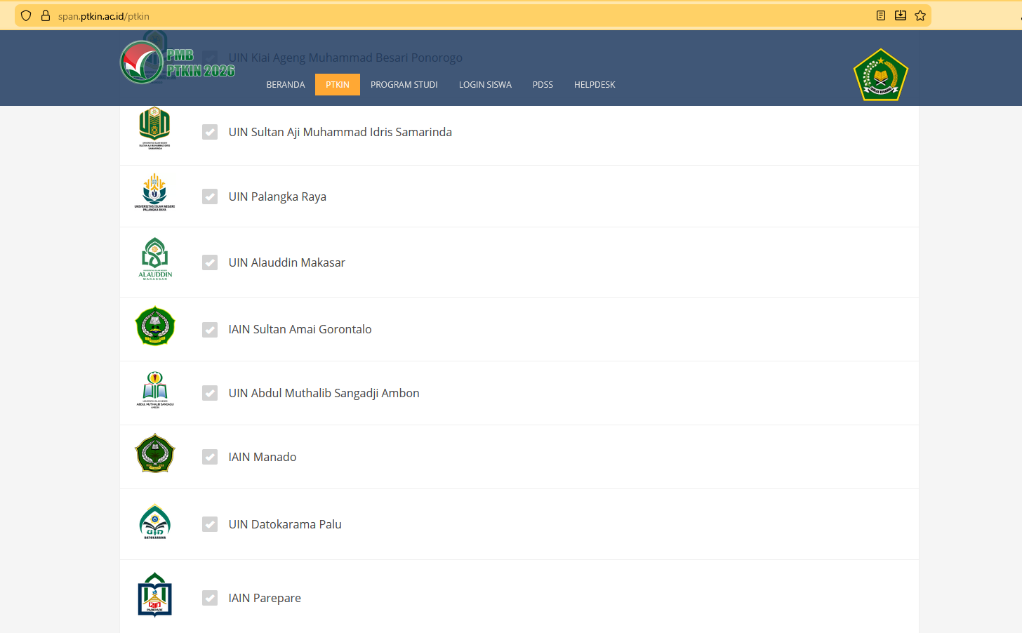 ALMULUKNEWS.COM, AMBON, — Universitas Islam Negeri Abdul Muthalib Sangadji Ambon secara resmi membuka pendaftaran mahasiswa baru melalui Jalur Seleksi Prestasi Akademik Nasional Perguruan Tinggi Keagamaan Islam Negeri (SPAN-PTKIN) Tahun 2026, bersama 58 PTKIN lainnya se-Indonesia.